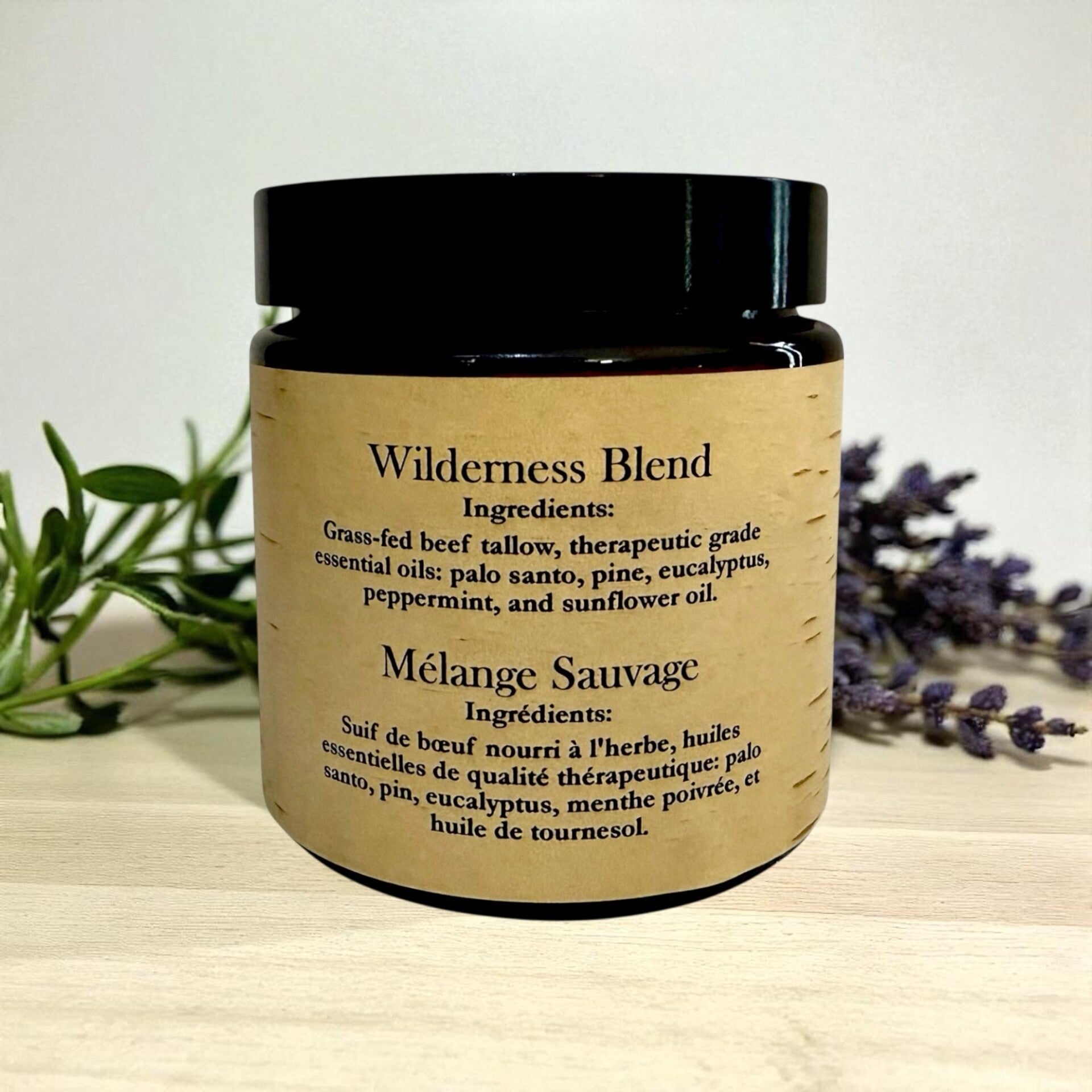 Grass-fed beef tallow, therapeutic-grade essential oils (peppermint, Palo Santo, pine, eucalyptus), sunflower oil.